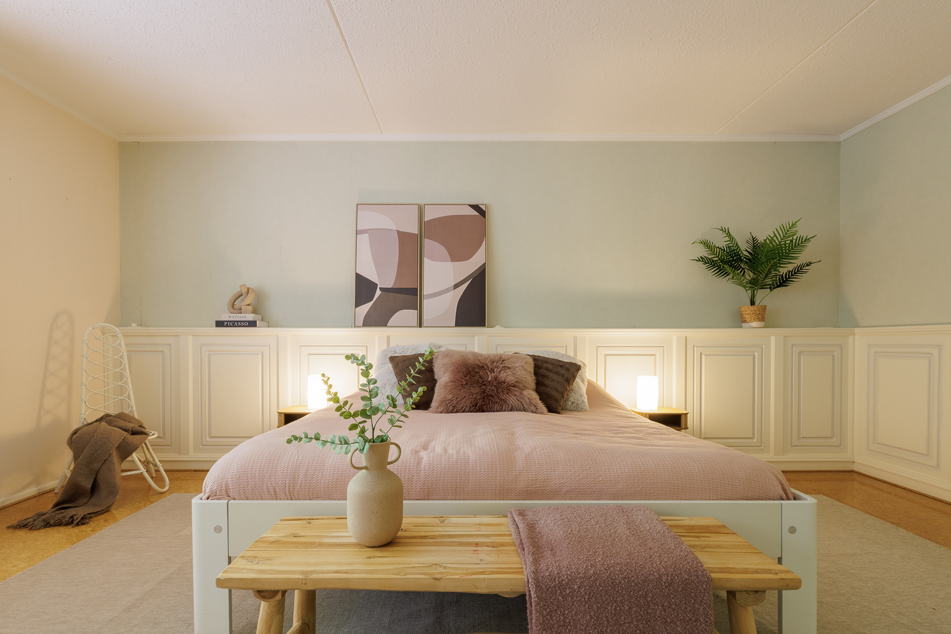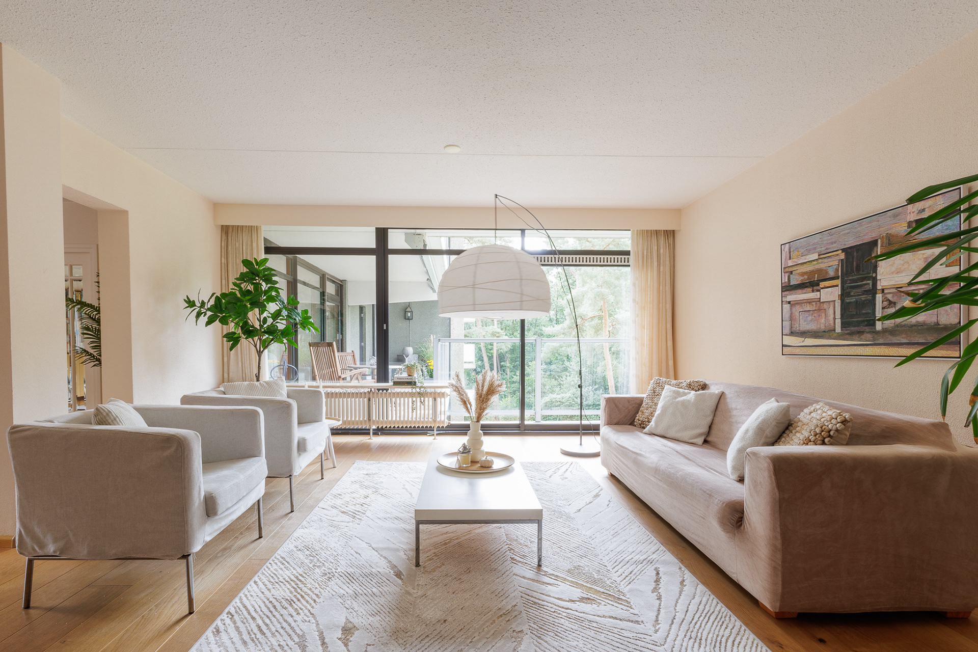 Thuisinverkoopstyling zorgde voor een passende inrichting en de verdere aankleding, zoals andere banken en fauteuils, vloerkleden, eetkamerstoelen, aankleding voor de bedden, planten en diverse accessoires.